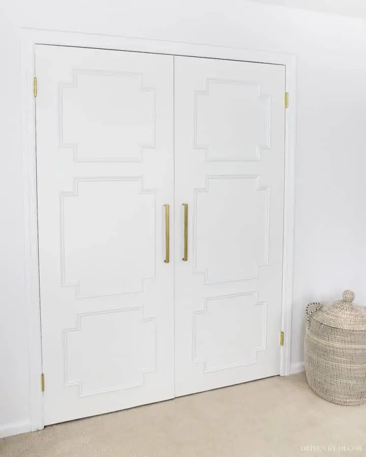 Add some simple molding to a hollow core door to give it more interest. Or consider painting your doors a bold color or black. You will be surprised how much of a difference this makes.
