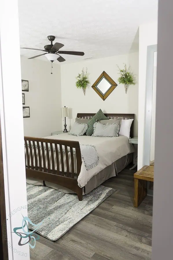 Stay tuned as I will be sharing how I turned placemats into decorative pillows. Those cute ruffled pillows were placemats and that bed scarf is actually a table runner.