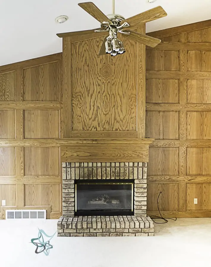 We thought we were going to stone the entire fireplace all the way up to the ceiling to break up the large amount of orange oak. I decided to try a makeover before spending the money on stone. If I didn’t like the makeover, we would proceed with the stone.