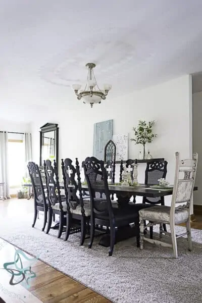 Do you know that feeling, the “let me stand here and take it all in”, the “I finally have this room makeover complete” feeling? I can finally say that I have this feeling as we are revealing our thrifted dining room makeover. Most everything in this space is used, thrifted, or repurposed. I think I am most proud of this…