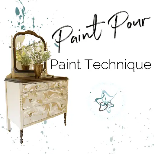 Pouring paint techniques can be used on any type of painting surface. Pouring with furniture paint adds depth, dimension, and beauty to any furniture piece.