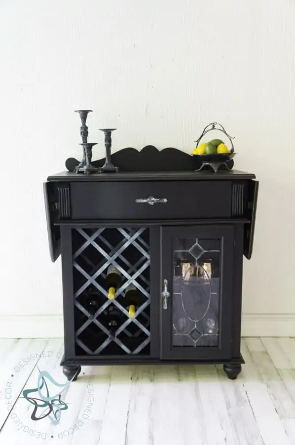I painted the base of the wine bar using General Finishes Lamp Black and sealed with High Performance in flat.